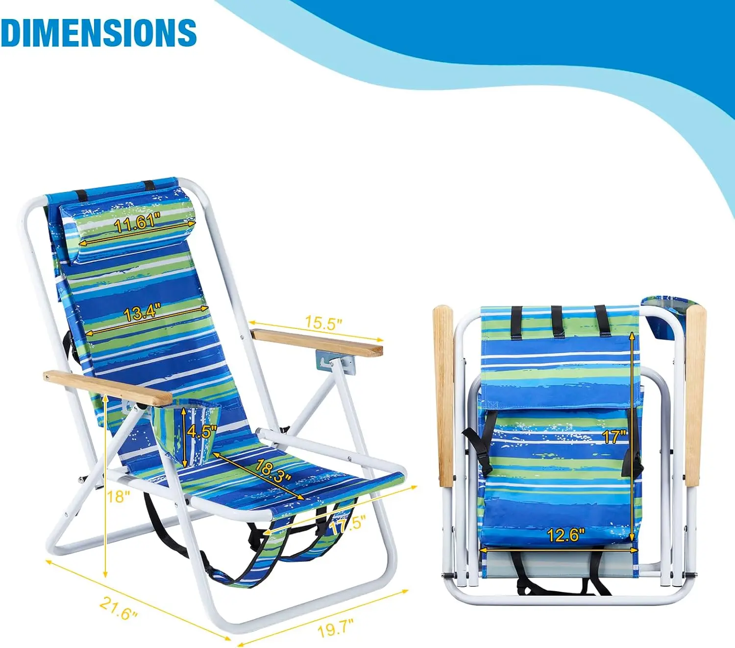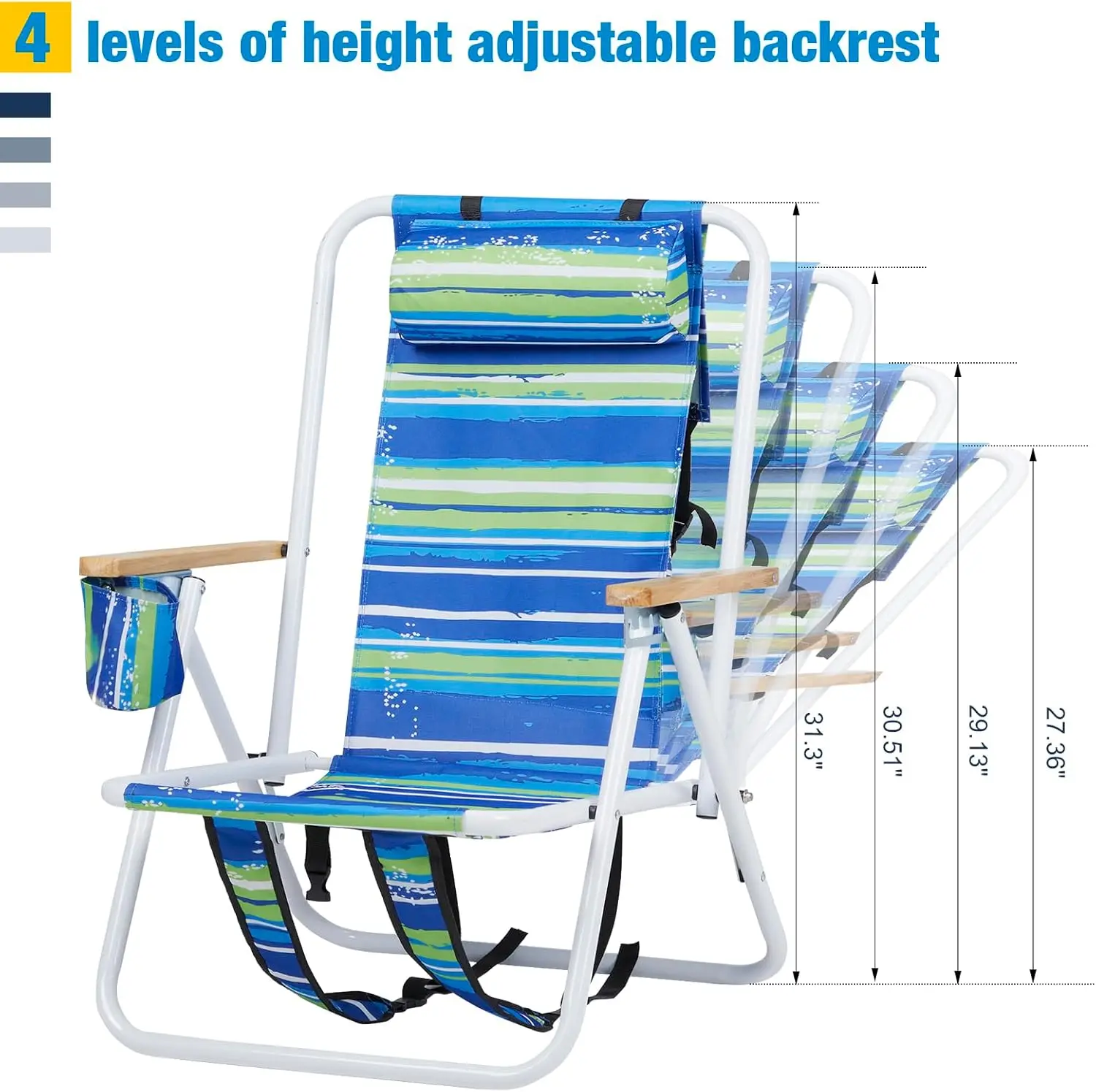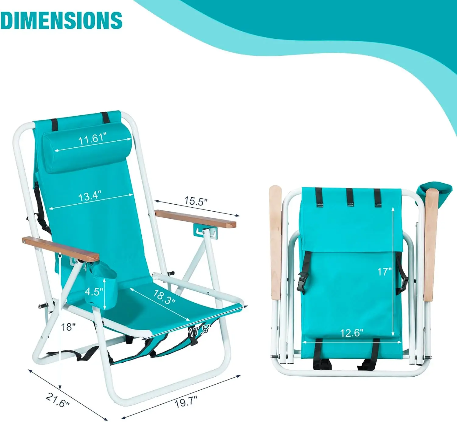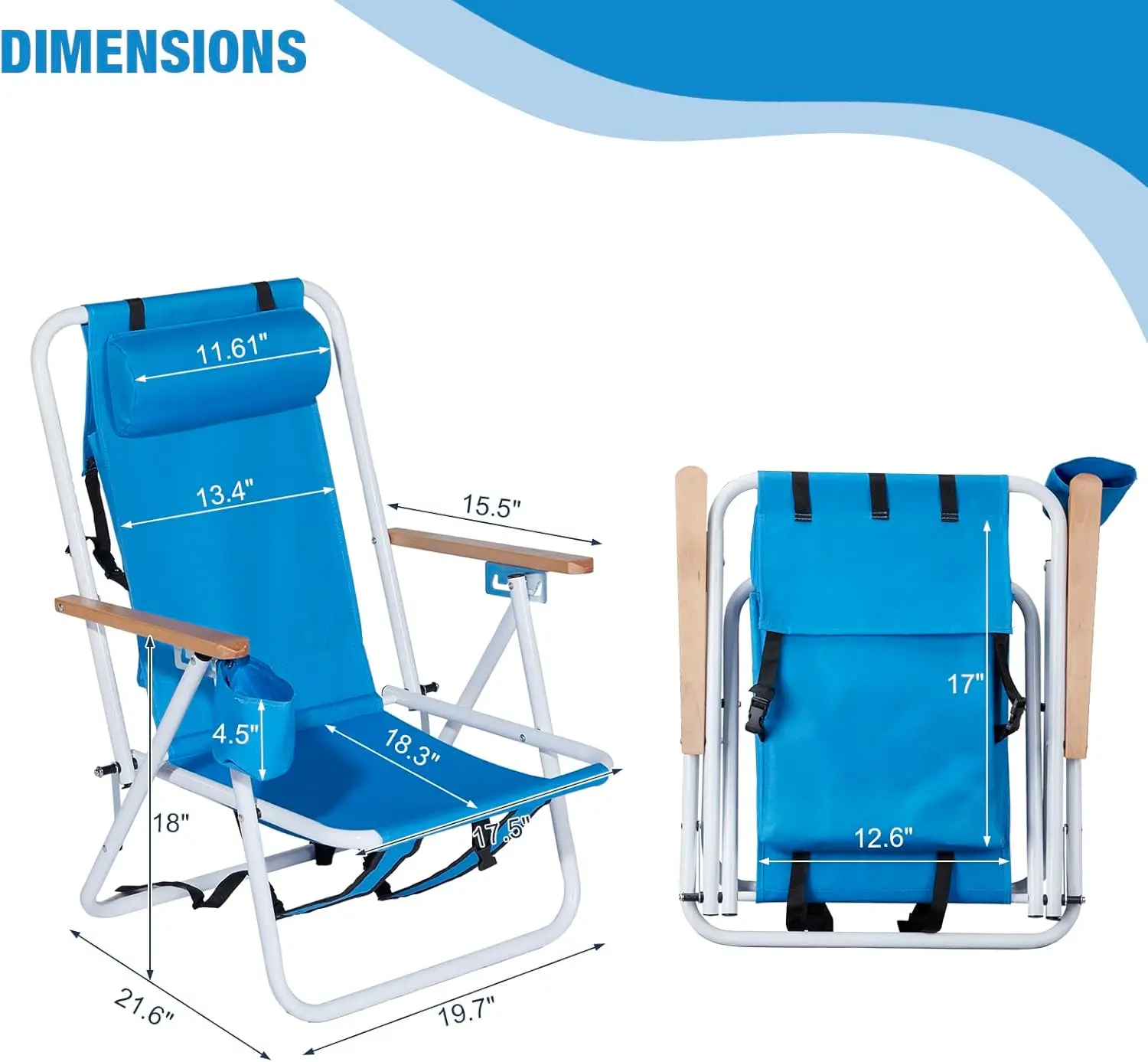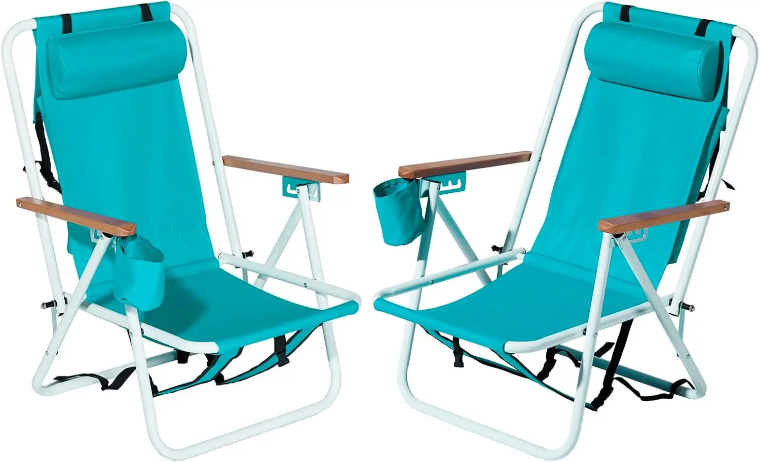 Folding Beach Chair with Adjustable Headrest, 4 Flexible Tilt Angles, Cup Holder, Portable High Strength Cleanable Fabric