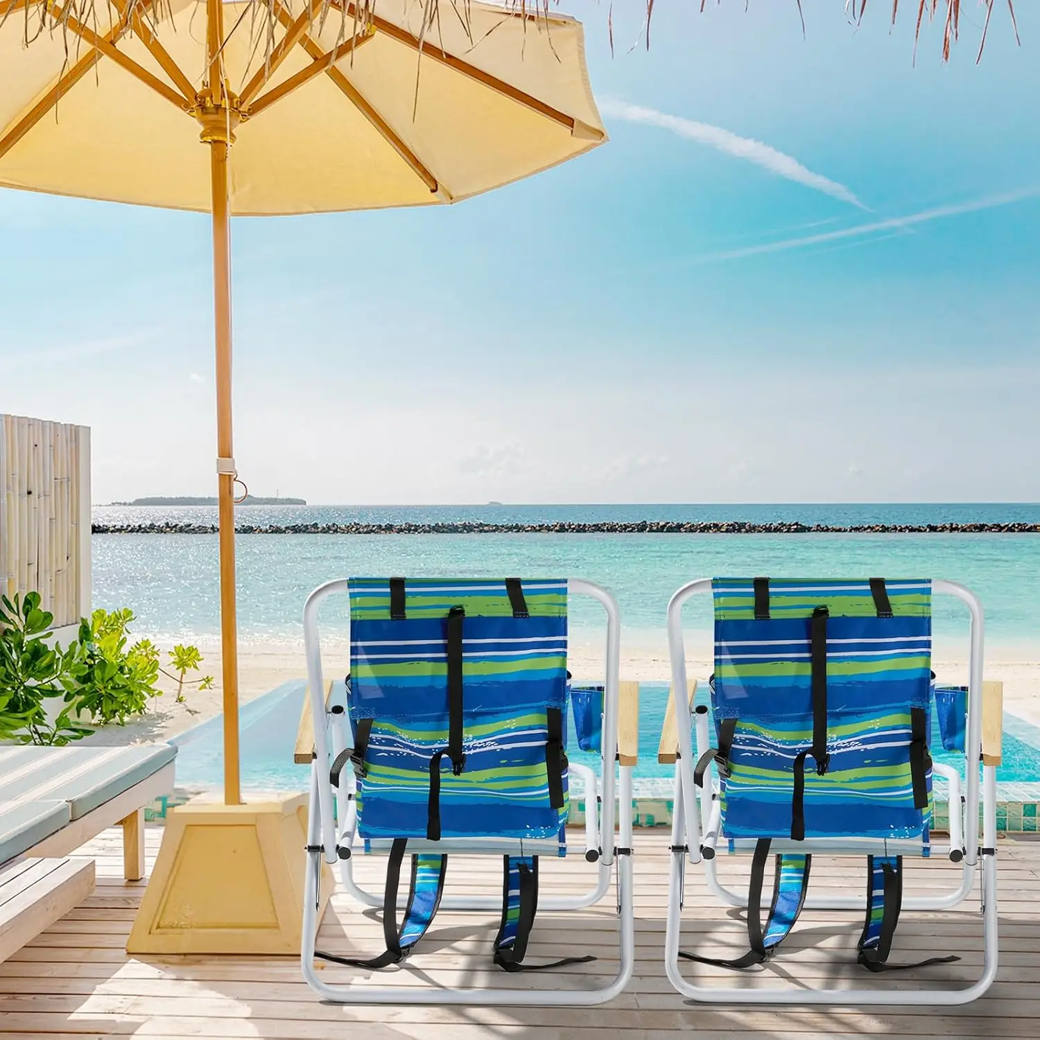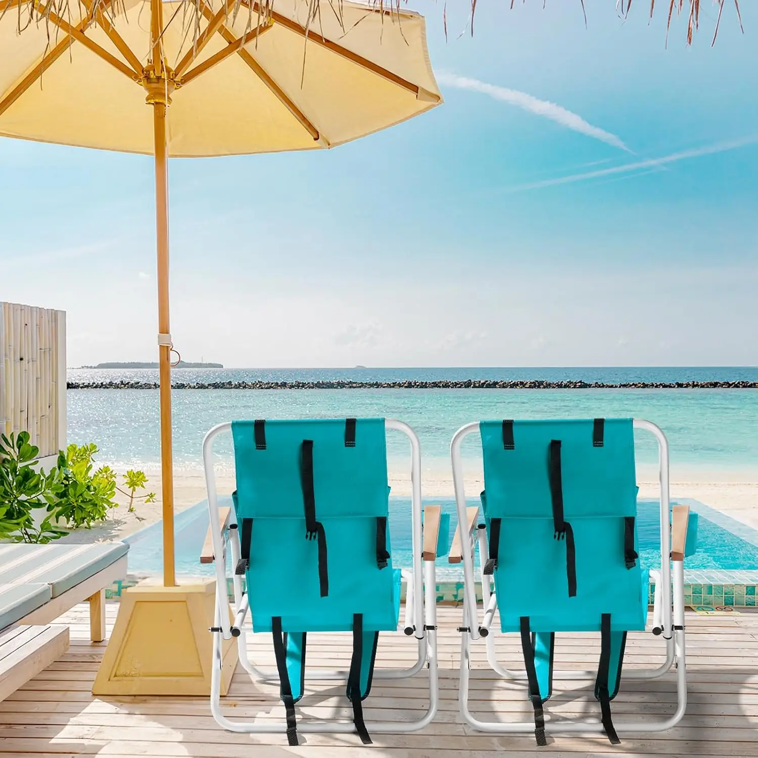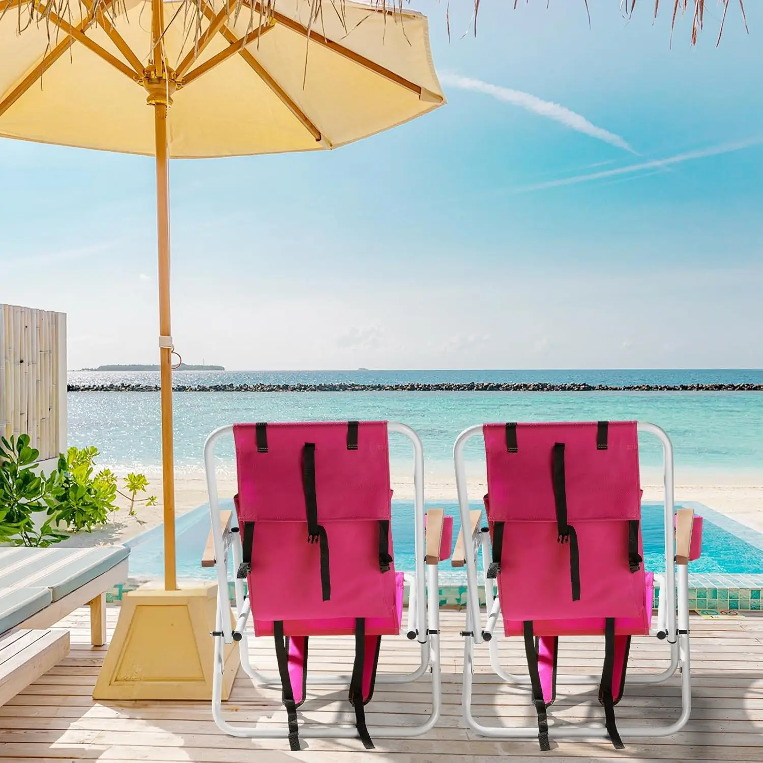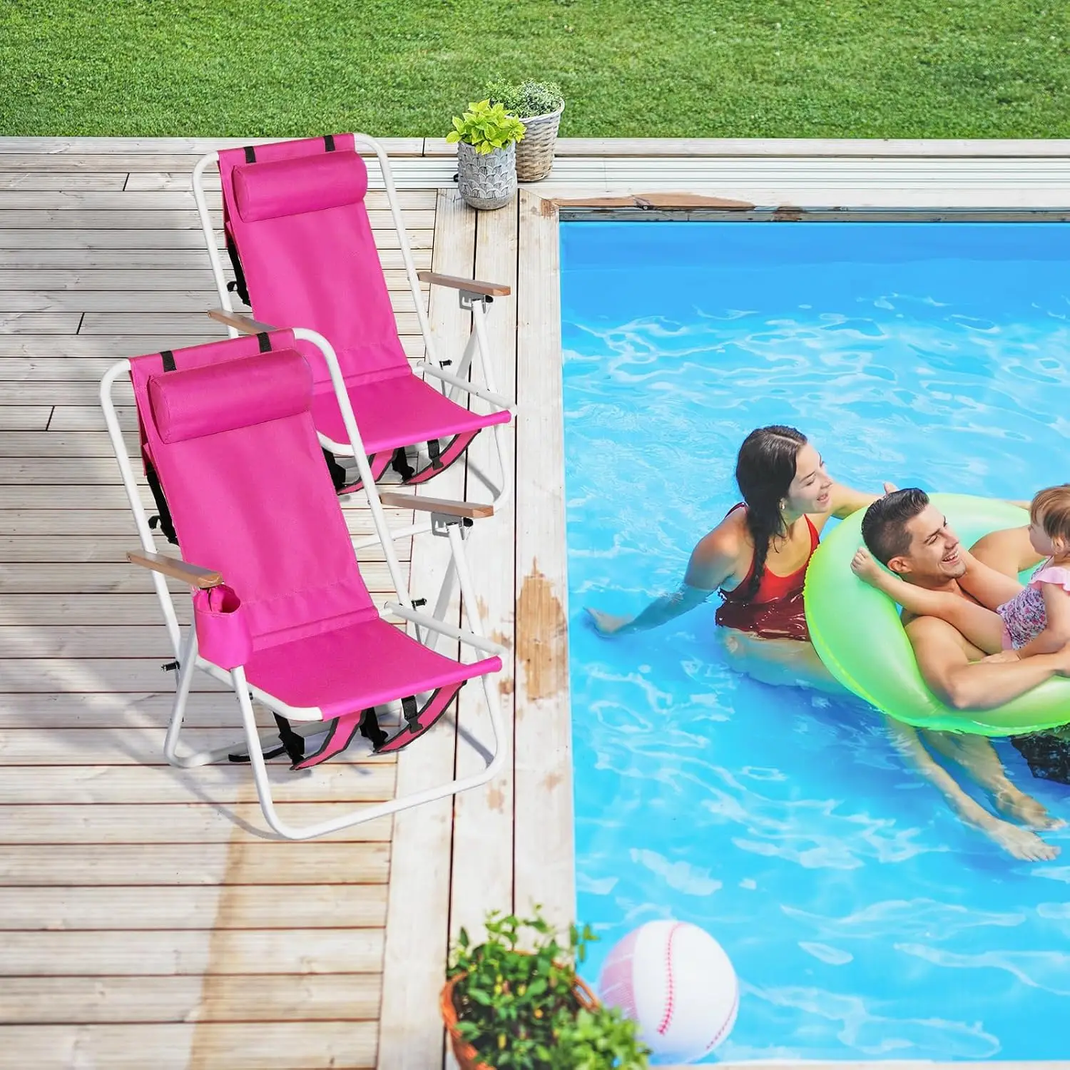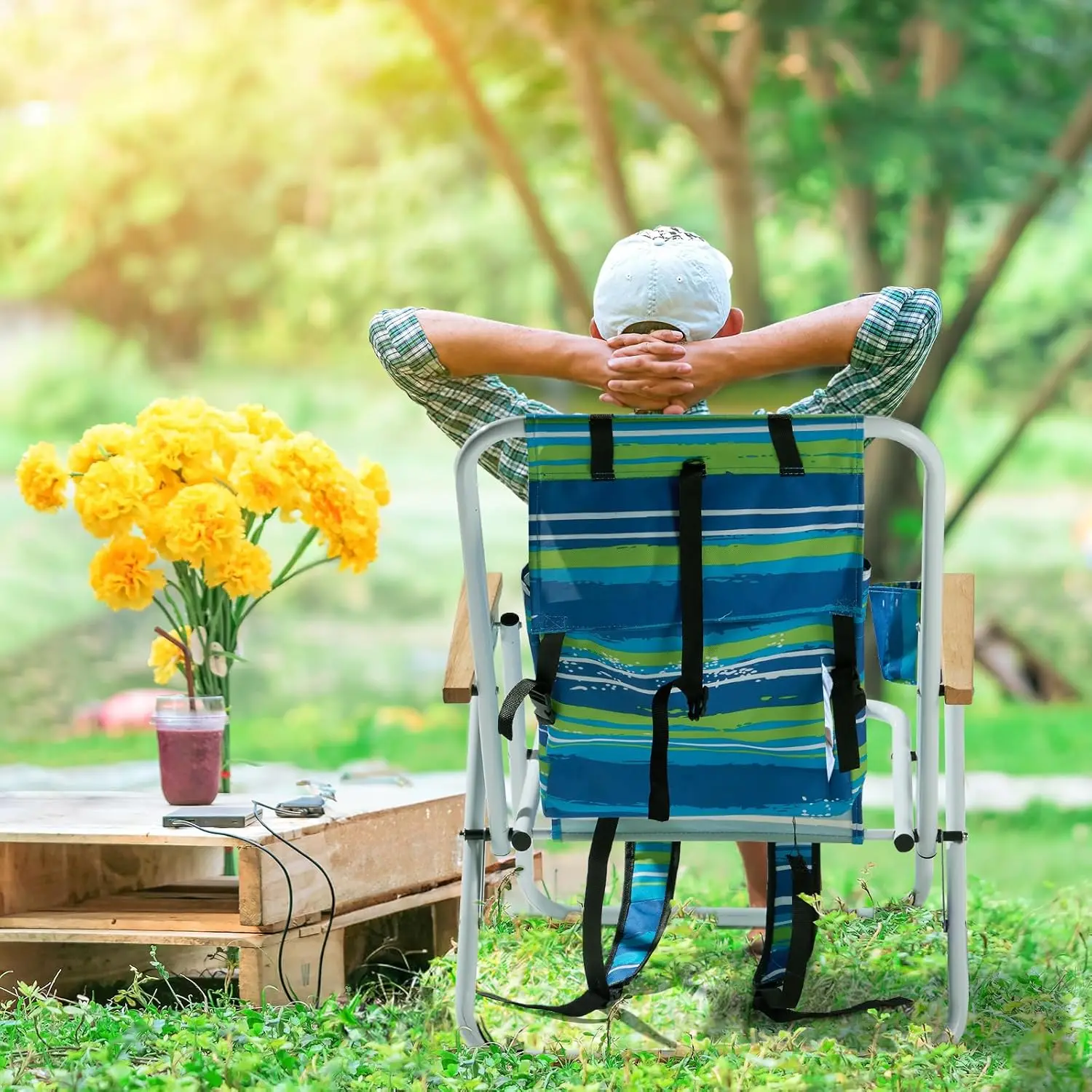 Folding Beach Chair with Adjustable Headrest, 4 Flexible Tilt Angles, Cup Holder, Portable High Strength Cleanable Fabric
